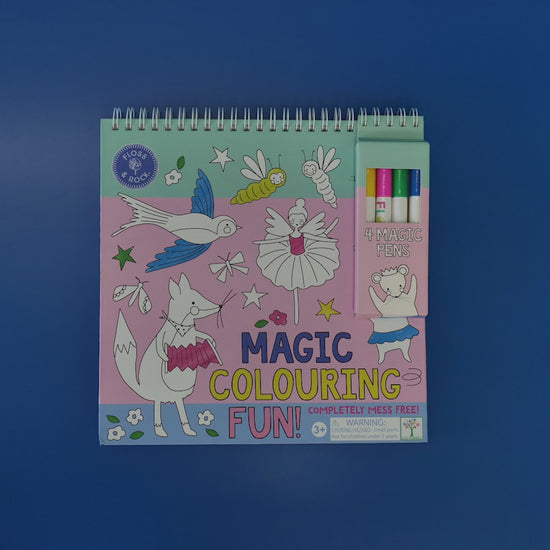 Zeg vaarwel tegen vieze vingers en rotzooi... Deze magische kleurstiften hebben onzichtbare inkt die alleen op de superleuke pagina's verschijnt! Kies een kleur en zie hoe deze op magische wijze op de pagina verschijnt. Elk spiraalgebonden blok bevat 4 magische pennen en 8 kleurpagina's, dit sprookjesachtige ontwerp bevat prinsessen, pompoenkoetsen, draken, beren en meer...
