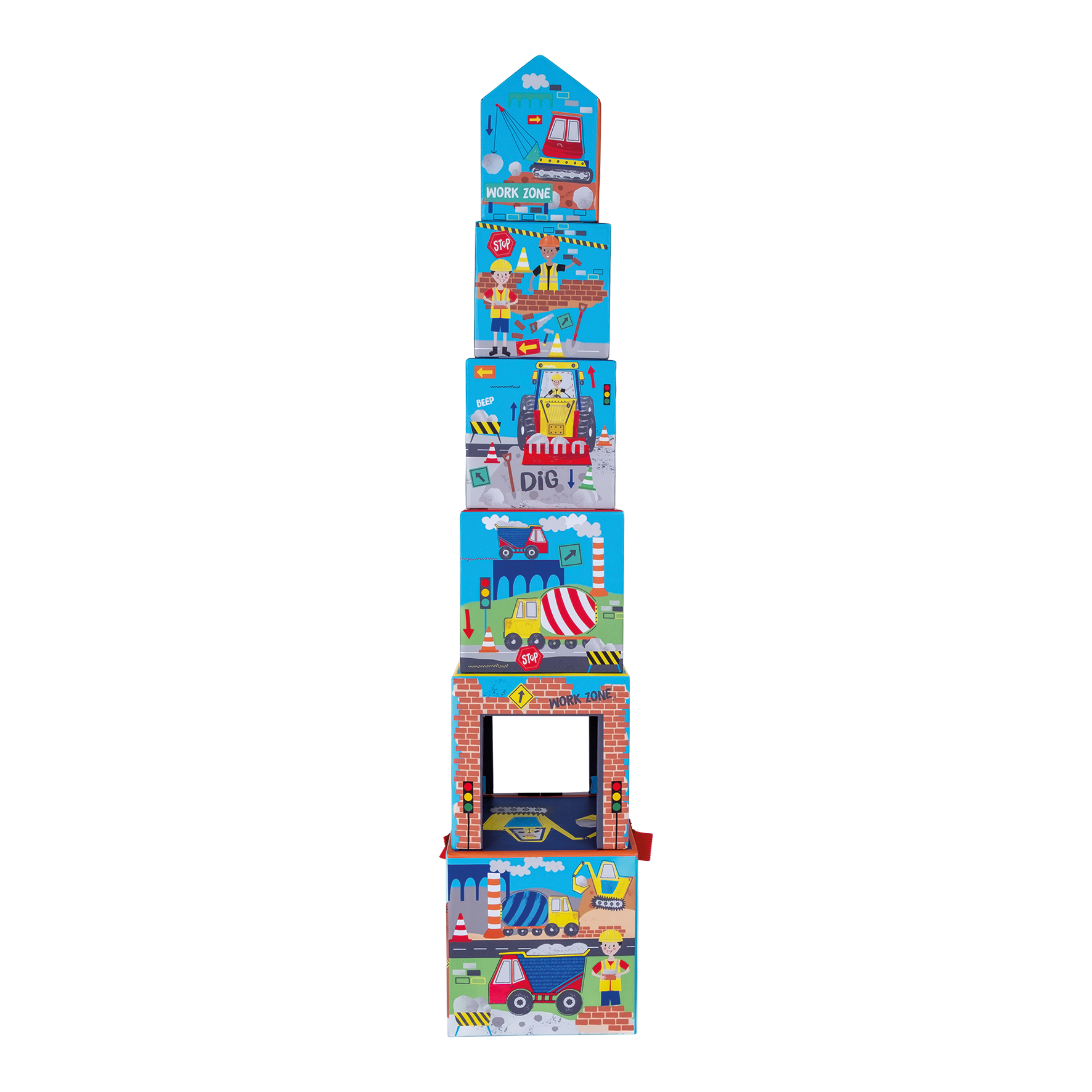 Bereid je voor op eindeloos veel plezier met de Stapel & Speeldoos van het merk Floss & Rock. Maak een toren, verstop je en speel met de houten stukken. Tel de getallen aan de ene kant en koppel de scènes aan de andere kant aan elkaar (door ze te stapelen of naast elkaar te leggen). Het coole constructieontwerp bevat graafmachines, vrachtwagens, cementmixers en meer. De Stapel & Speeldoos bevat 6 stapelkubussen, 3 houten speelstukken waarvan 2 op wielen. Alle onderdelen zitten opgeborgen in de grootste doos met een handig handvat, waardoor je hem makkelijk mee kunt nemen!